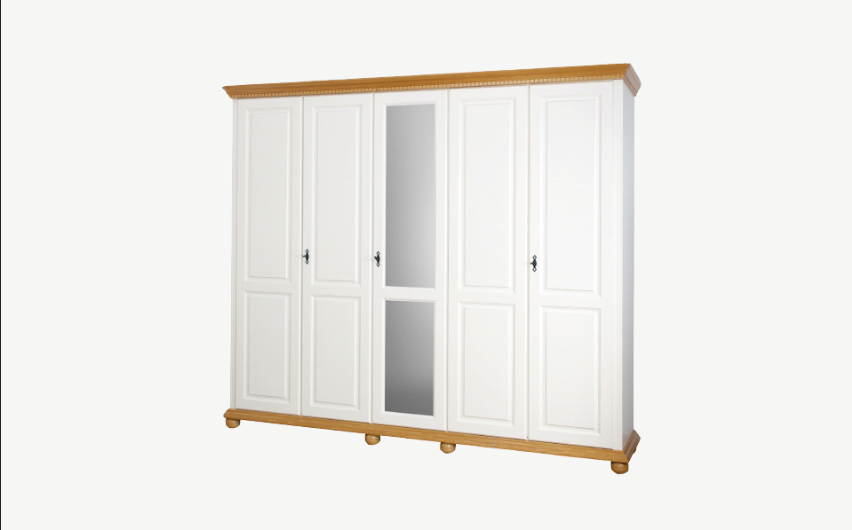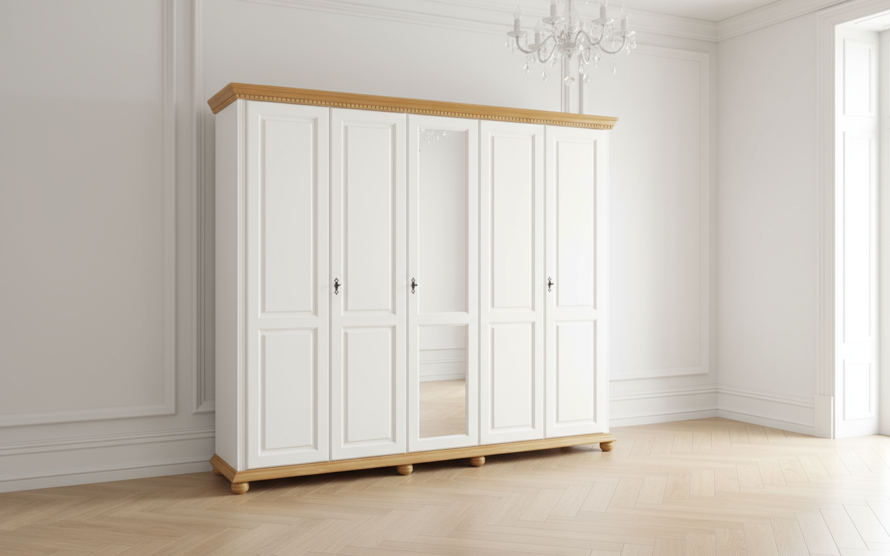 Dulap 5 uși din lemn masiv – alb, natur sau nuc