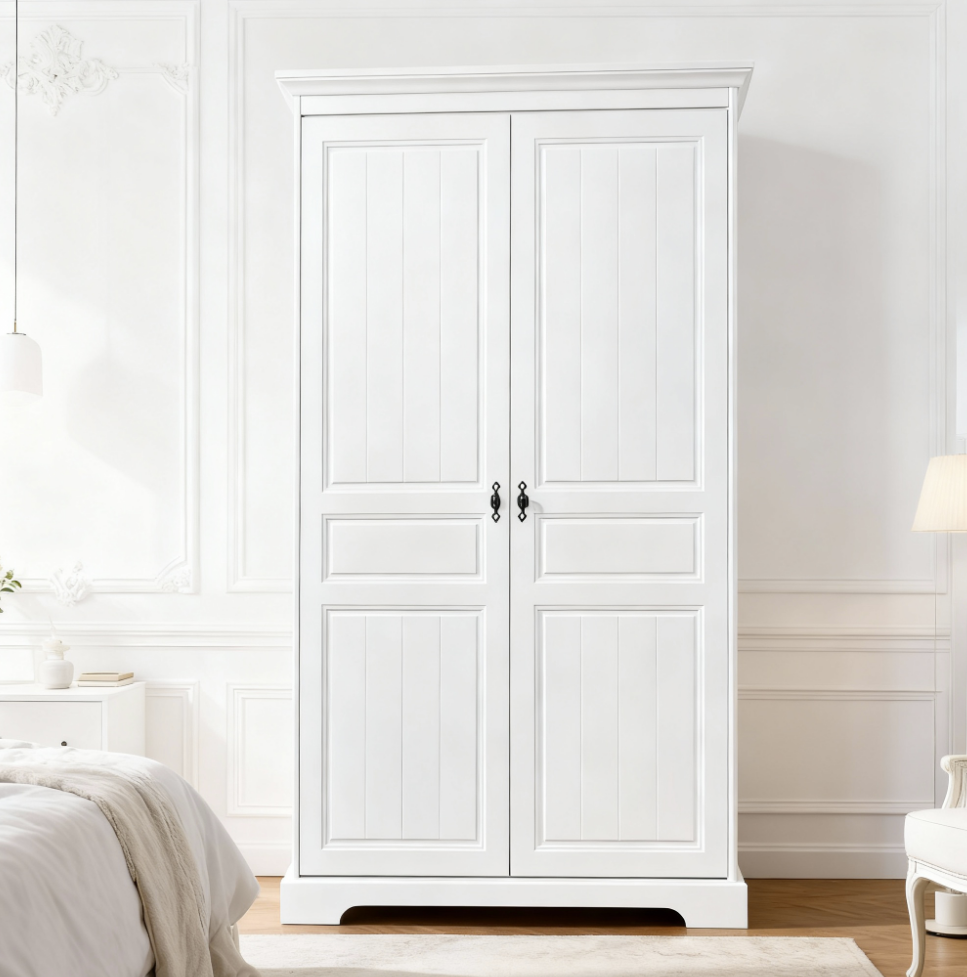 Dulapul 2 uși Cara, realizat din lemn masiv, este soluția perfectă pentru dormitoare amenajate în stil clasic sau contemporan. Disponibil în finisaj complet alb, oferă un spațiu generos de depozitare cu o compartimentare bine gândită. Mânerele pot fi comandate din mai multe variante disponibile, vizibile în pozele suplimentare. Mobilierul poate fi comandat în culoarea alb complet sau alb cu margini natur sau nuc.