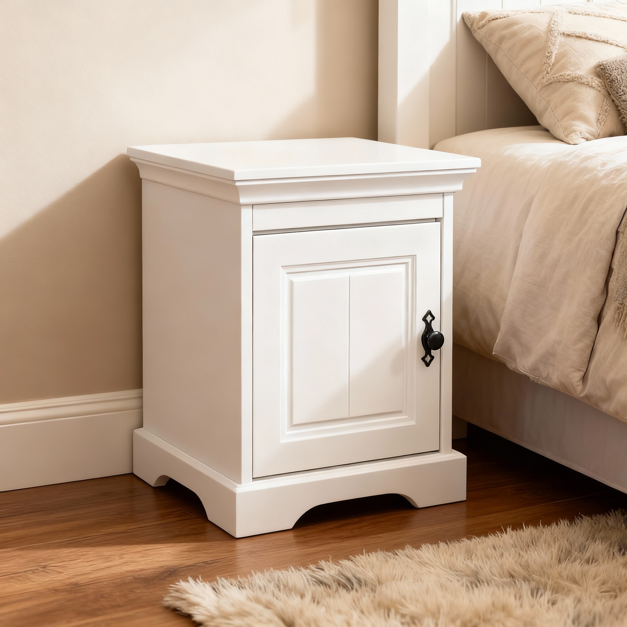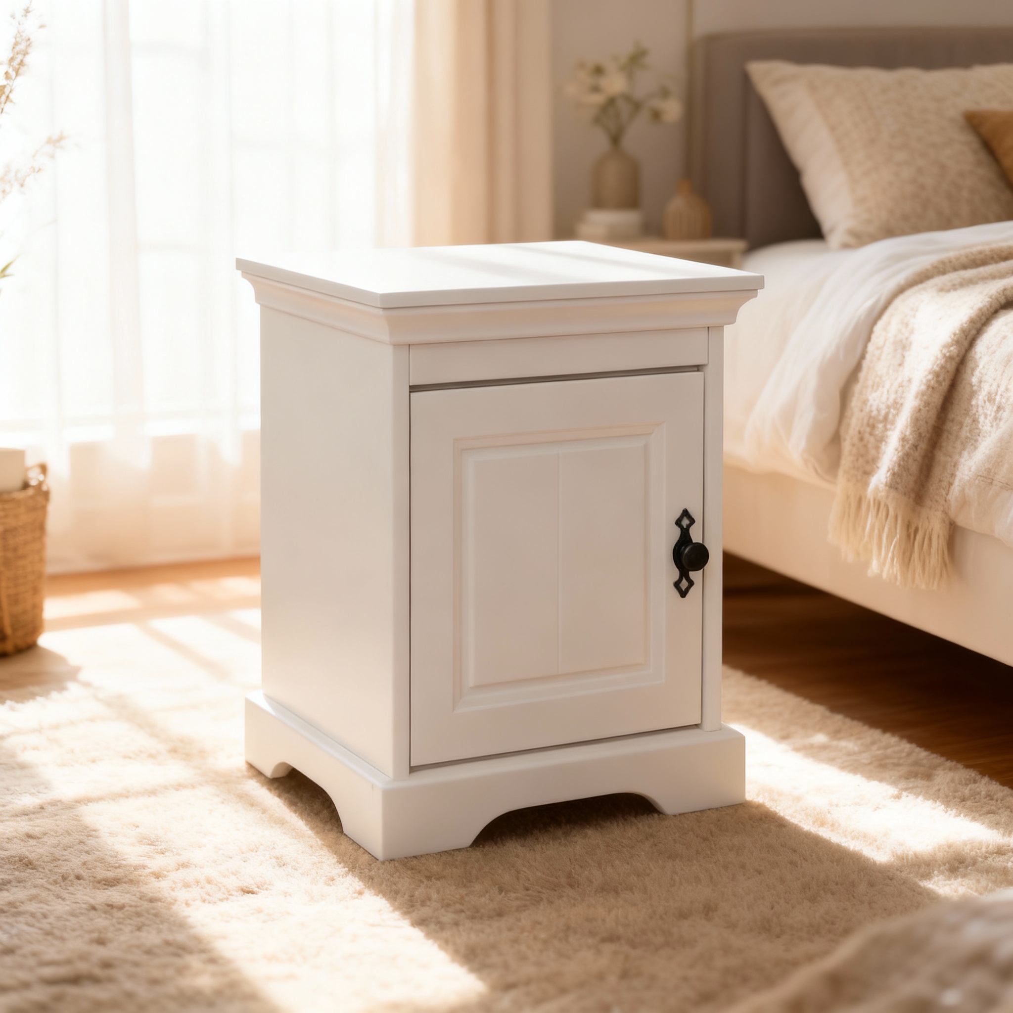 Noptiera alba Cara realizata din lemn masiv  este disponibila in finisaj alb cu natur, nuc sau intergral alba. Dispine de 1 usa cu deschidere spre dreapta sau stanga.