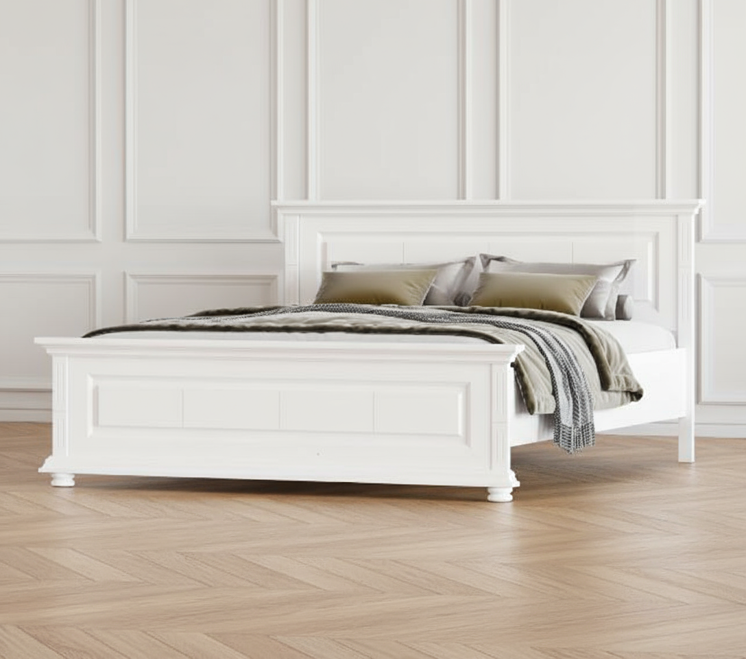Pat 140×200 Mori, din lemn masiv aduce un aspect curat și atemporal în dormitor, cu un finisaj alb care luminează spațiul și scoate în evidență liniile clasice ale tăbliei și ale cadrului. Somiera este inclusă pentru susținere optimă și stabilitate, iar modelul poate fi configurat și în combinații alb cu natur sau alb cu nuc pentru a se potrivi stilului dorit.
