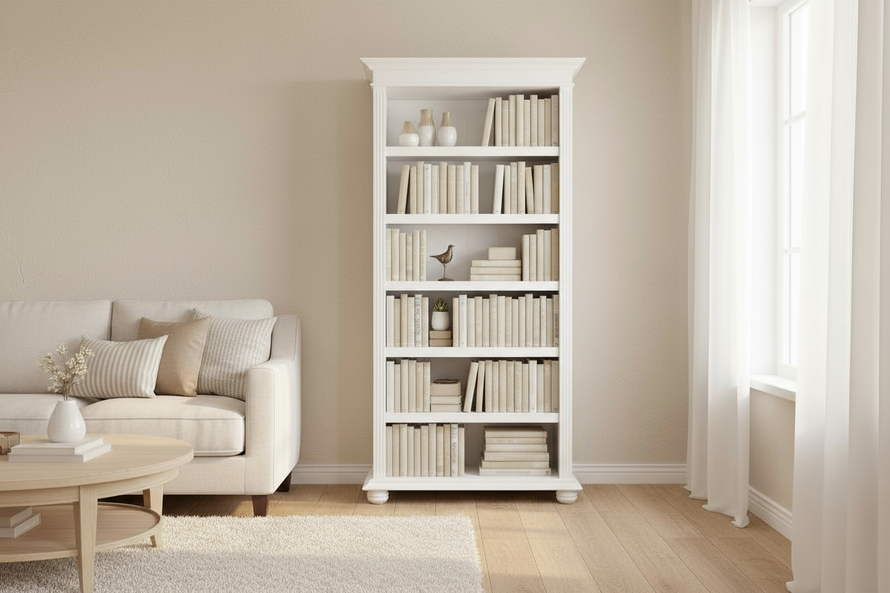 Etajera cu rafturi pentru living este confecționată din lemn masiv de brad, fiind disponibilă în finisaje alb, alb cu nuc sau alb cu natur, perfectă pentru ambientări moderne și luminoase. Manerele pot fi personalizate la cerere, iar opțiunile pot fi vizualizate în secțiunea Poze. Se recomandă integrarea acestei etajere în living pentru a completa colecția Sena și pentru a valorifica spațiul de depozitare cu stil.