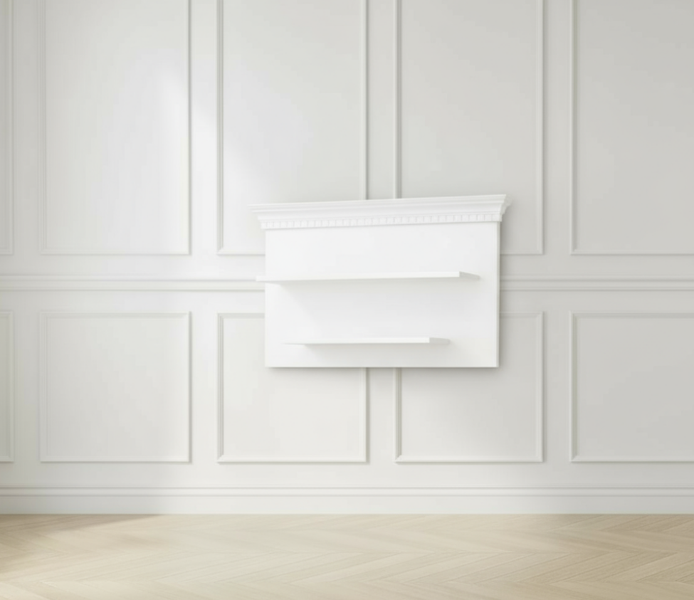 Polița perete suspendata alba din lemn masiv completează elegant setul Bari, fiind disponibilă în finisaj alb cu cornișă natur, alb cu cornișă nuc sau integral alb pentru integrare ușoară în living. Piesa include două etajere pentru expunerea decorurilor sau pentru depozitare ușoară și se potrivește perfect deasupra comodei TV din aceeași colecție.